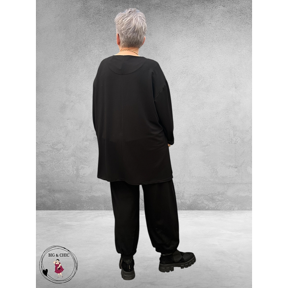 ** Nieuwe Collectie**Frenzi shirt – Zwart met opgestikte bloemapplicatie en asymmetrische zoomDit Frenzi shirt in zwart combineert elegantie met een subtiele creatieve touch. Het pronkstuk van het ont...