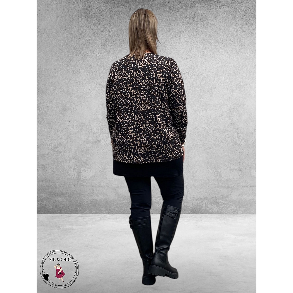 Deze prachtige blouse/shirt in warme bruin- en beigetinten is een echte eyecatcher voor elke gelegenheid.