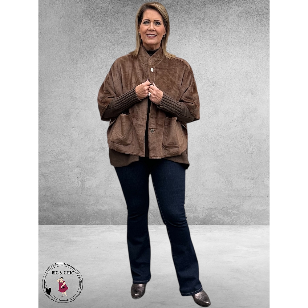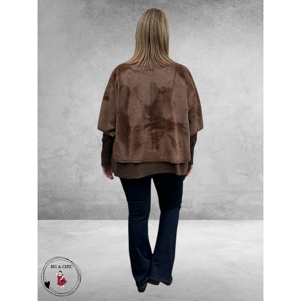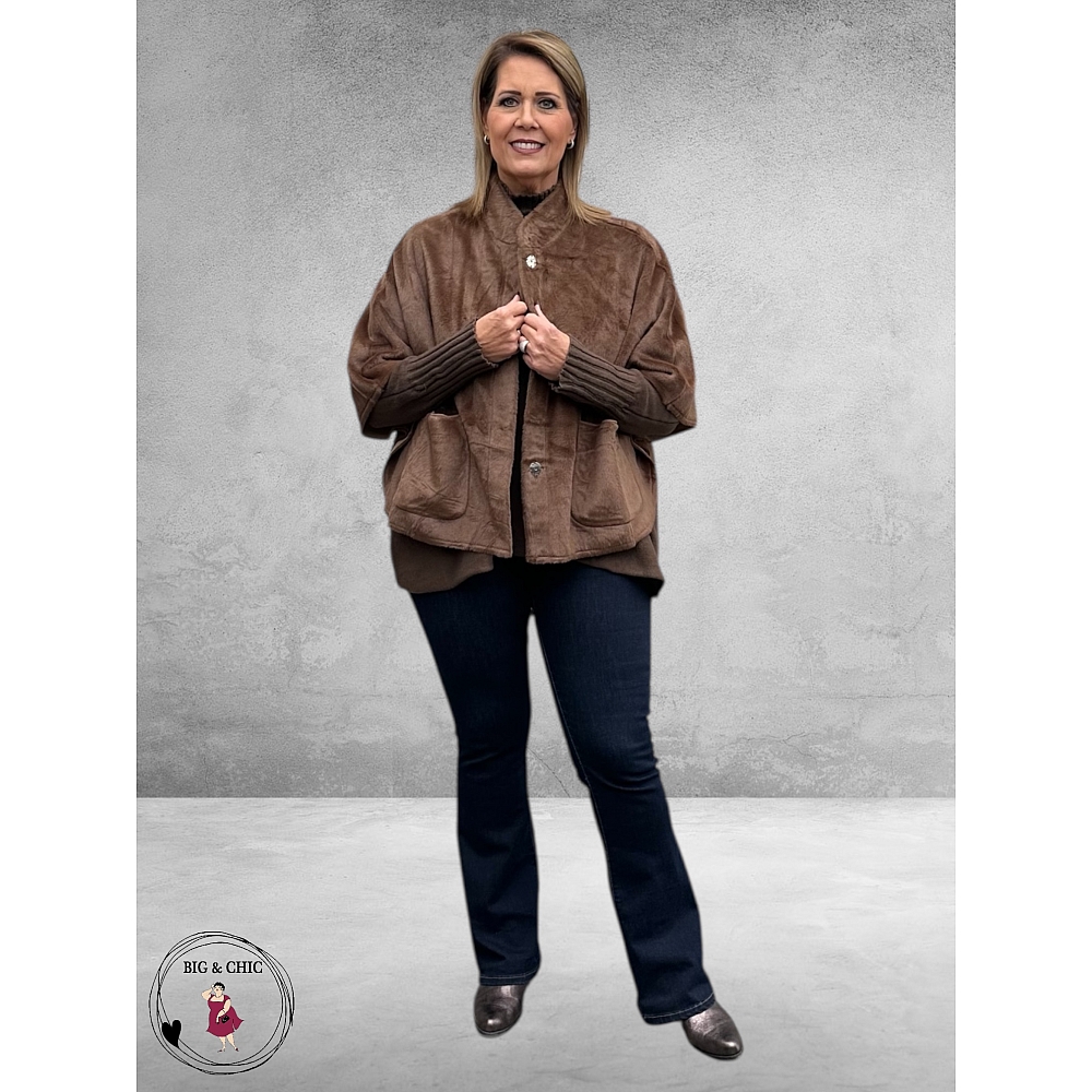 Aan de binnenkant vind je een zachte laag van nep-suède, waardoor de cape soepel valt en luxe aanvoelt op de huid.