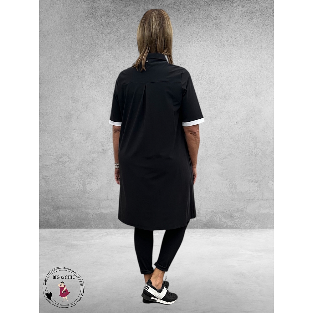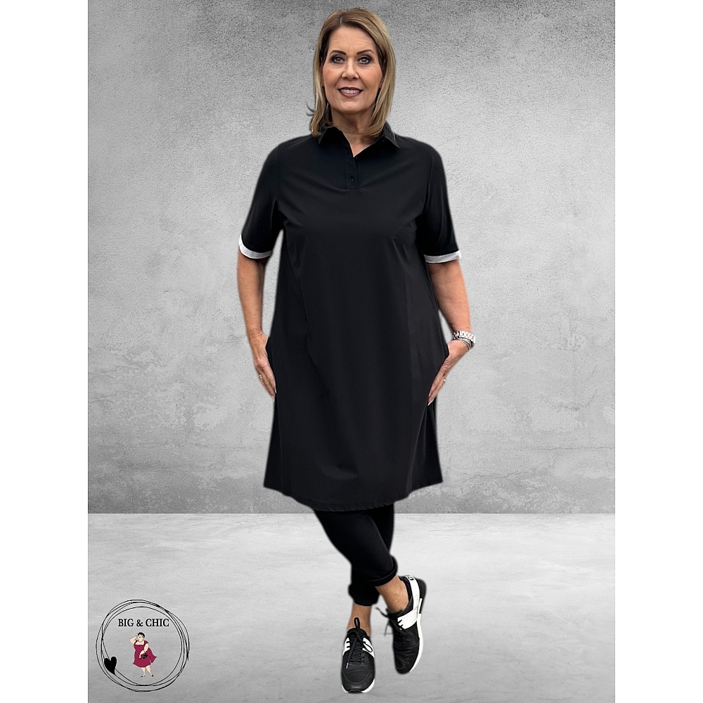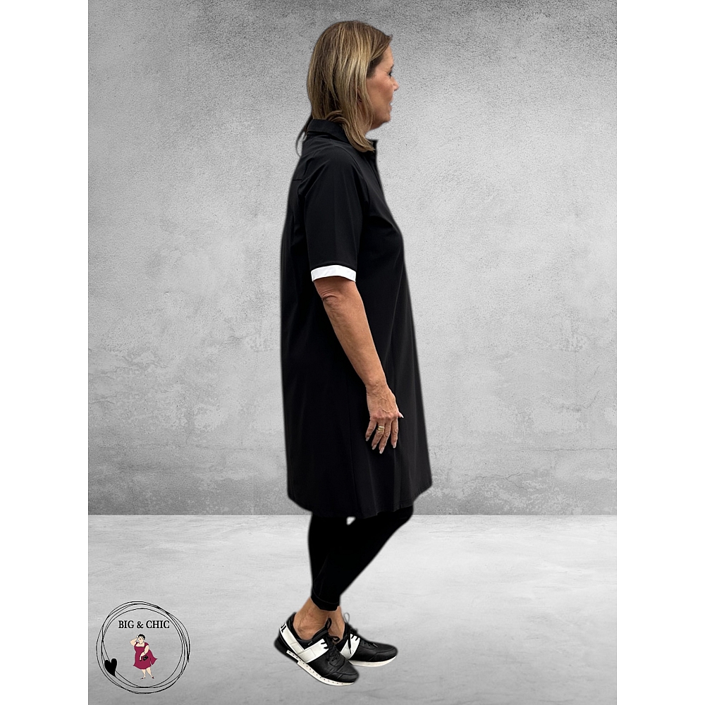 De klassieke zwarte kleur krijgt een sportieve twist door de witte bies, terwijl de korte mouwen en klassieke polokraag met fijne knoopjes zorgen voor een tijdloos silhouet.