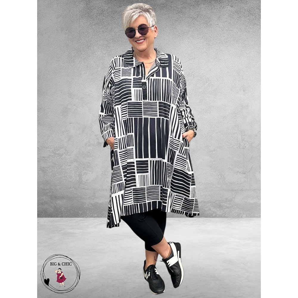 AKH Blouse/Jurk Cherry A-Lijn Zwart/Wit