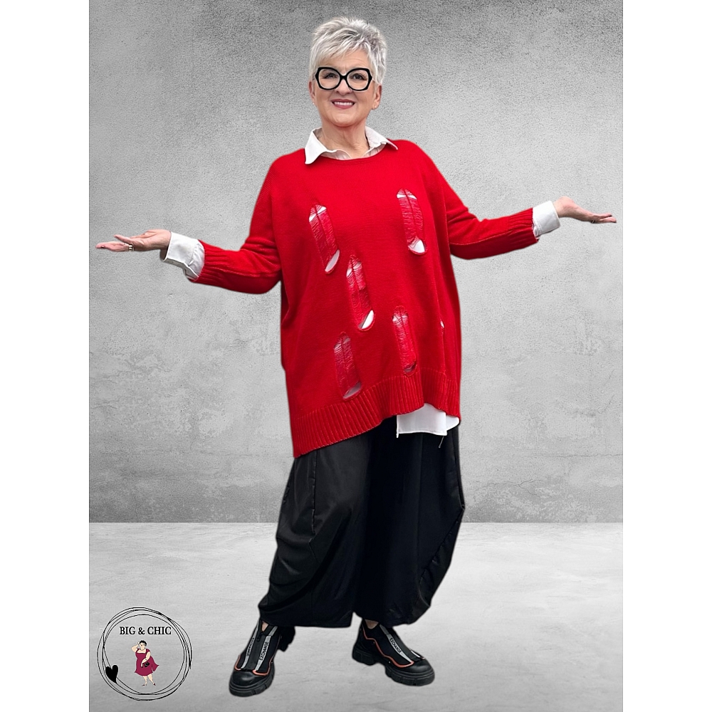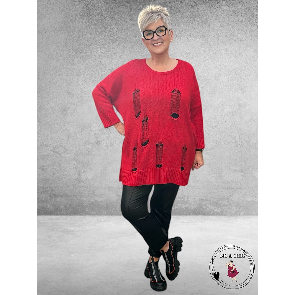 Deze super gave gebreide fijnstrik trui van AKH met unieke destroyed details op het voorpand is een echte blikvanger.