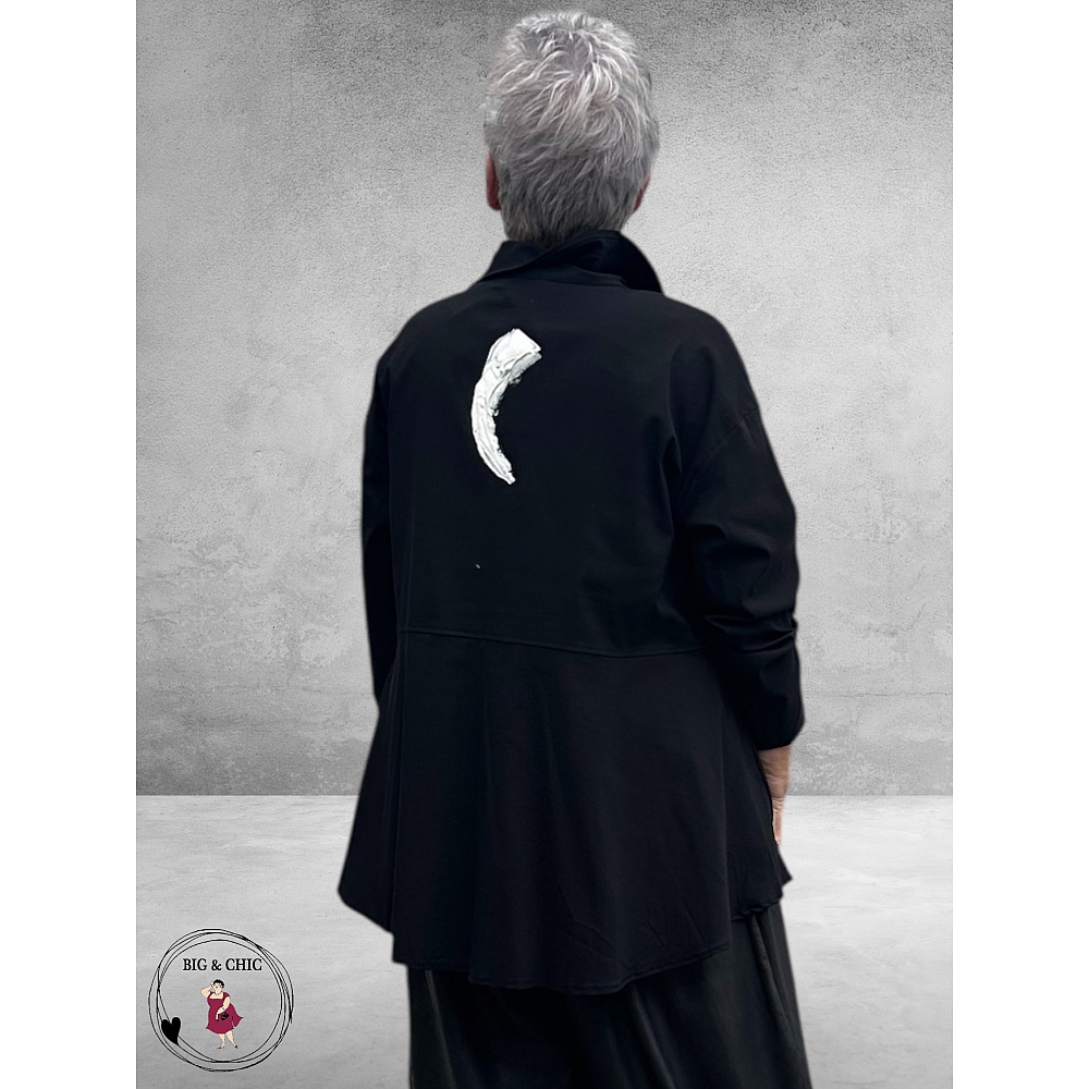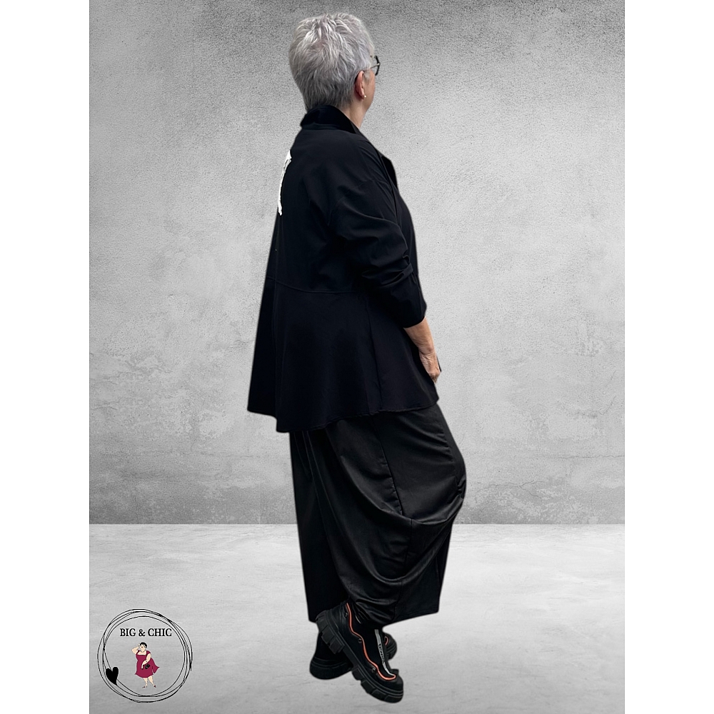 Deze Divas Planet zwarte blouse combineert elegantie met unieke details.