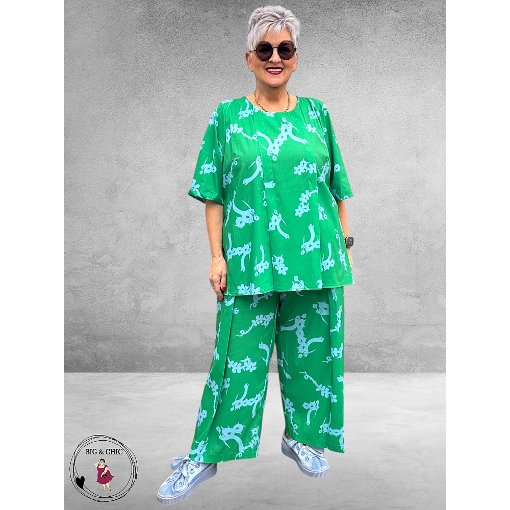 Wat dit pak écht bijzonder maakt, is de frisse kleurstelling: appelgroen met een lichtblauwe print. Prachtig als complete set, maar ook los te combineren met trendy lichtblauw of wit.