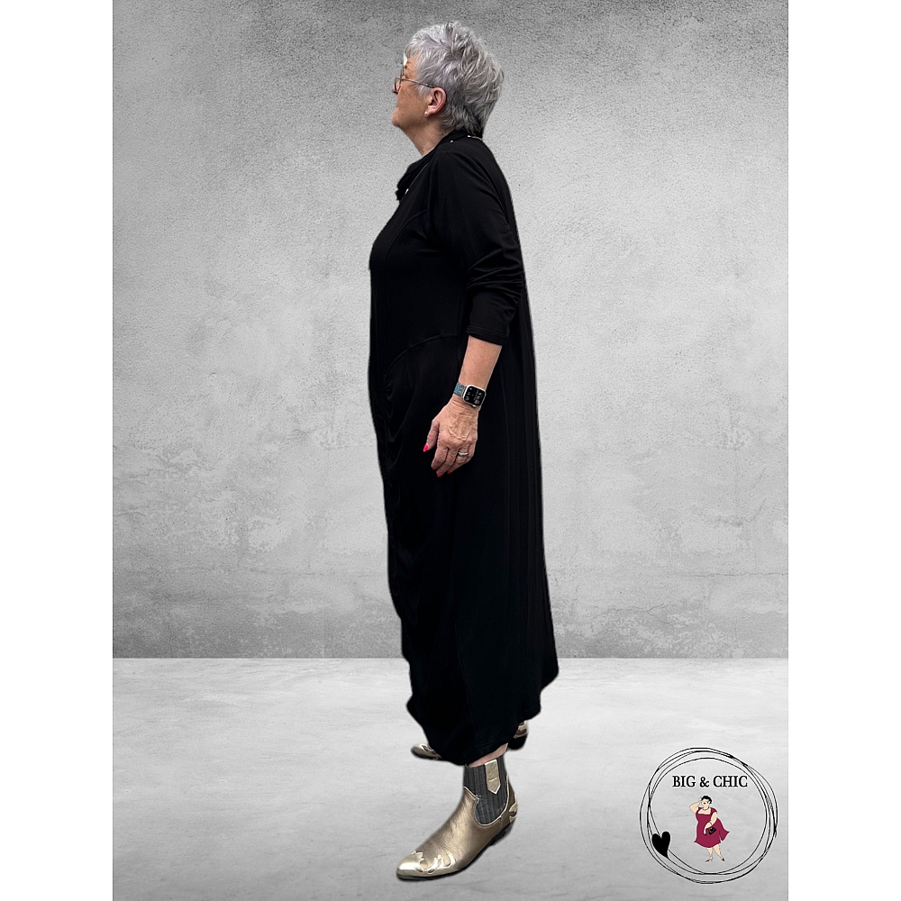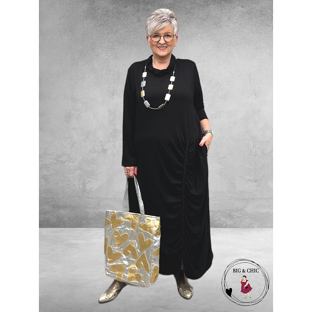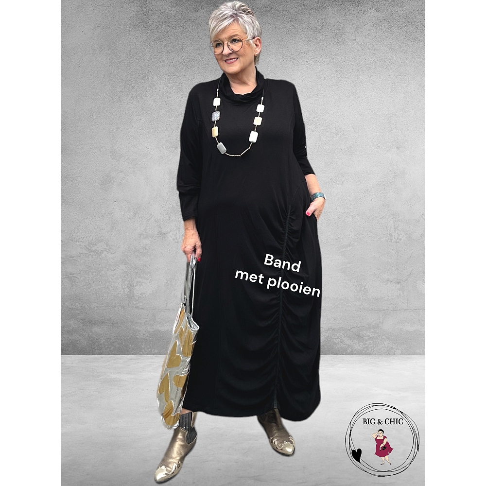 Lange Jurk Do Your Best – Zwart met Rolkraag en Rimpeldetail