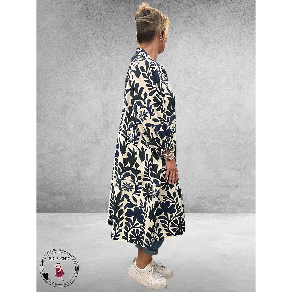 De Nelly jurk van Gozzip is een stijlvolle en comfortabele jurk met een prachtige blauw-witte botanische print.