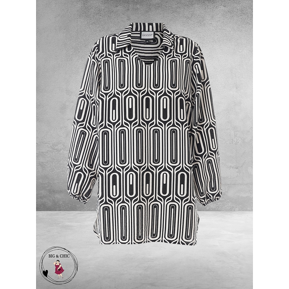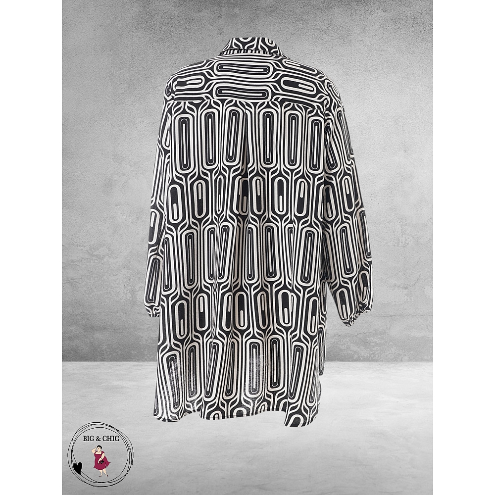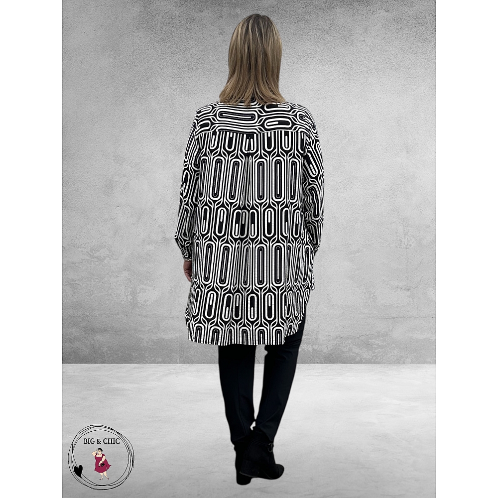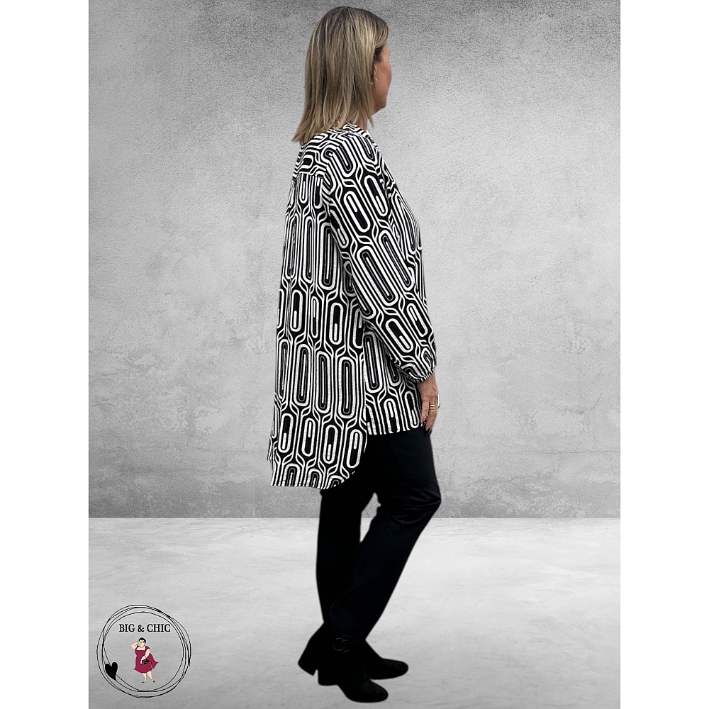 Deze prachtige tunic met een stijlvol zwart-wit patroon is de perfecte mix van elegantie en comfort.