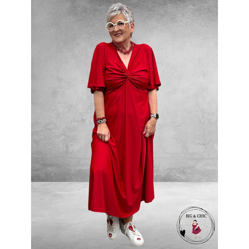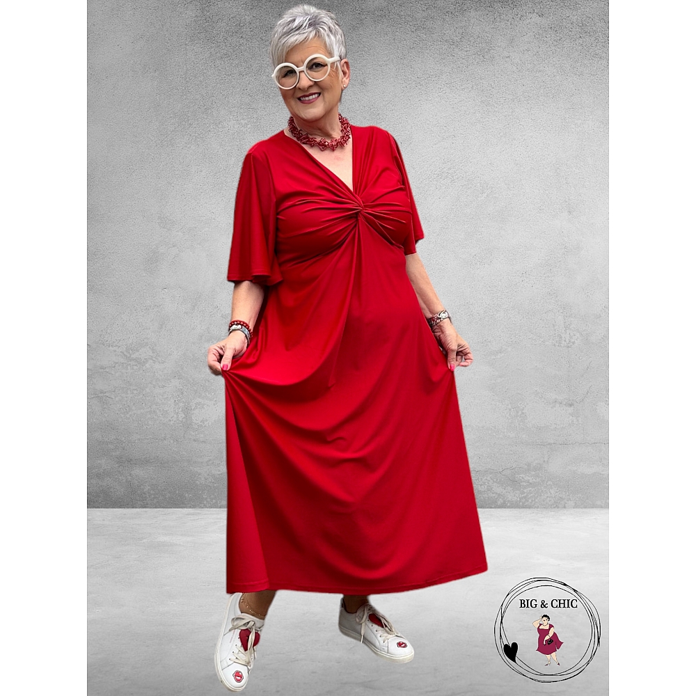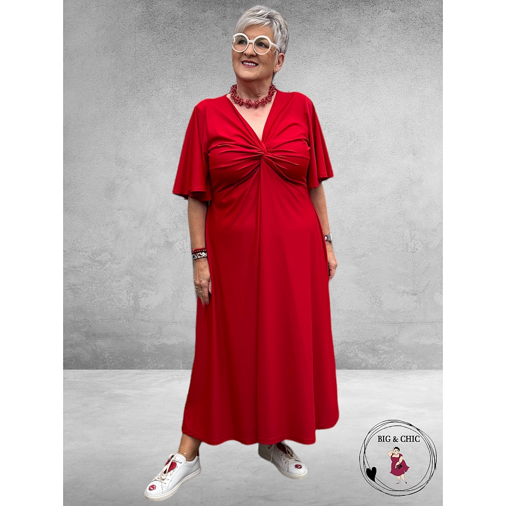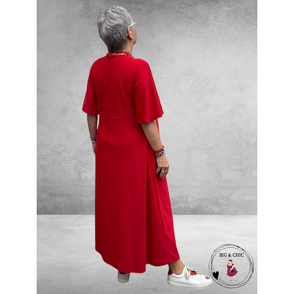 Prachtige en elegante rode jurk van Just For You in travel kwaliteit en een koopdetail dat zorgt voor een speelse en toch verfijnde uitstraling.