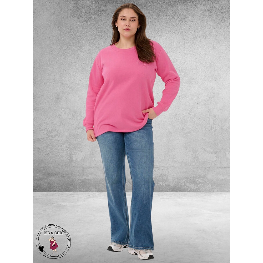 Mooie, comfortabele sweater in een frisse pinkkleurige tint met de stijlvolle borduurde "Roze" van Kaffe Curve.