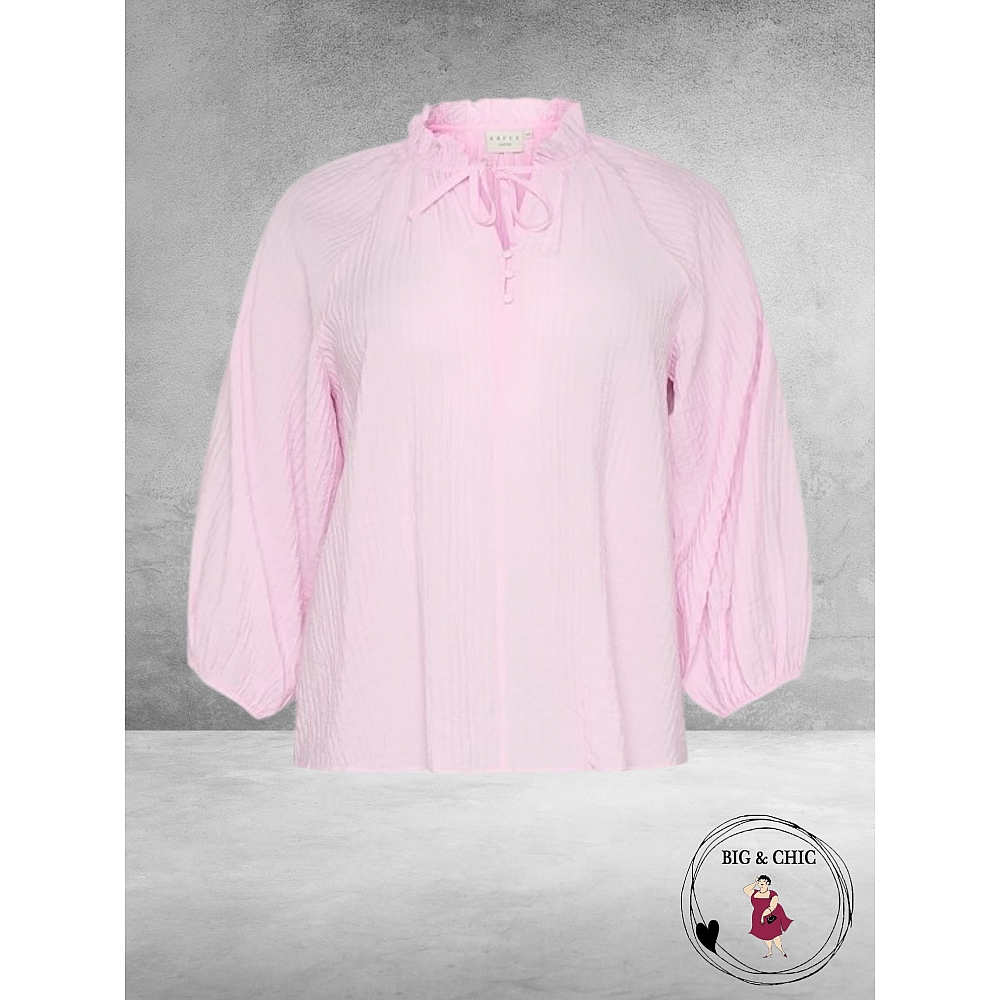Mooie lekker luchtige blouse van KAFFE CURVE in een zacht rose tint met een romantisch kraagje.