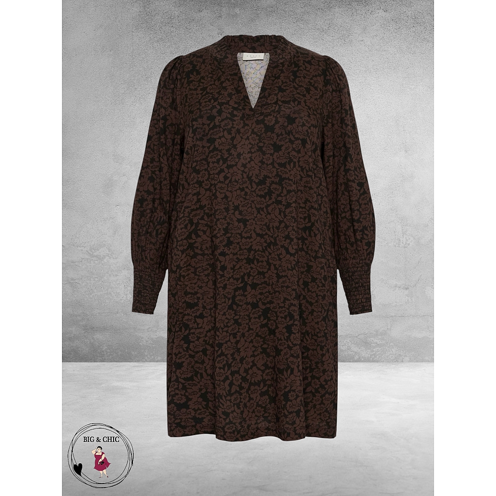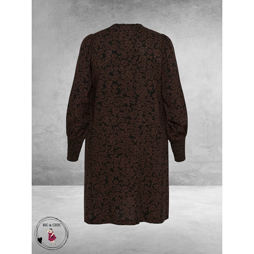 Deze prachtige jurk in de trendkleur Fudge – een warme mix tussen bruin en bordeaux – is een absolute must-have voor dit seizoen.