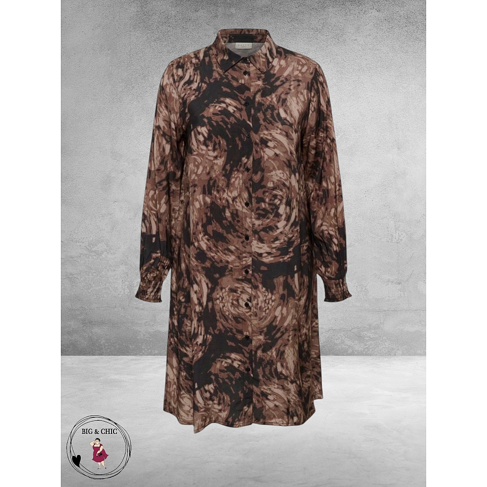 Kaffe Curve Overhemdjurk Bruin met Grafische Netprint – A-lijn, Lange Mouwen