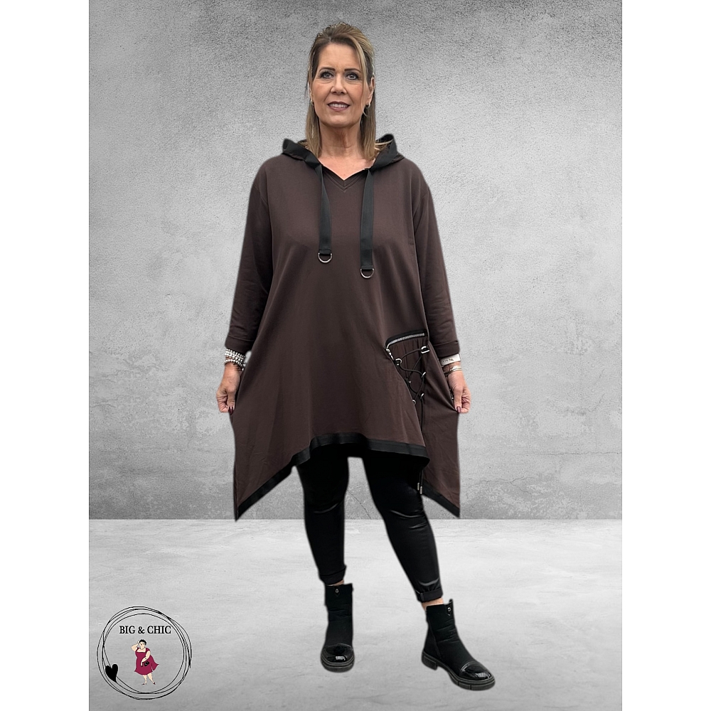 Sinne Design Bruine Tuniek/Jurk met Asymmetrische Punt en Glanzende Capuchon
