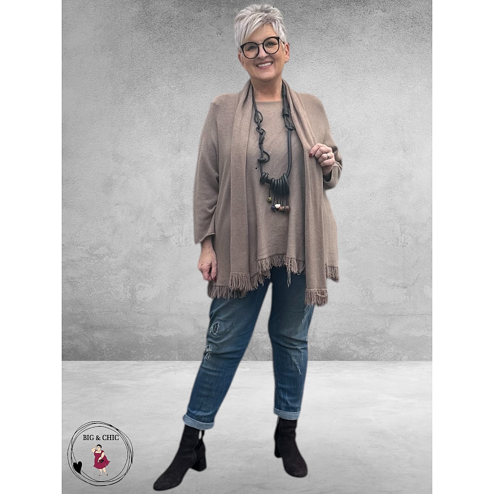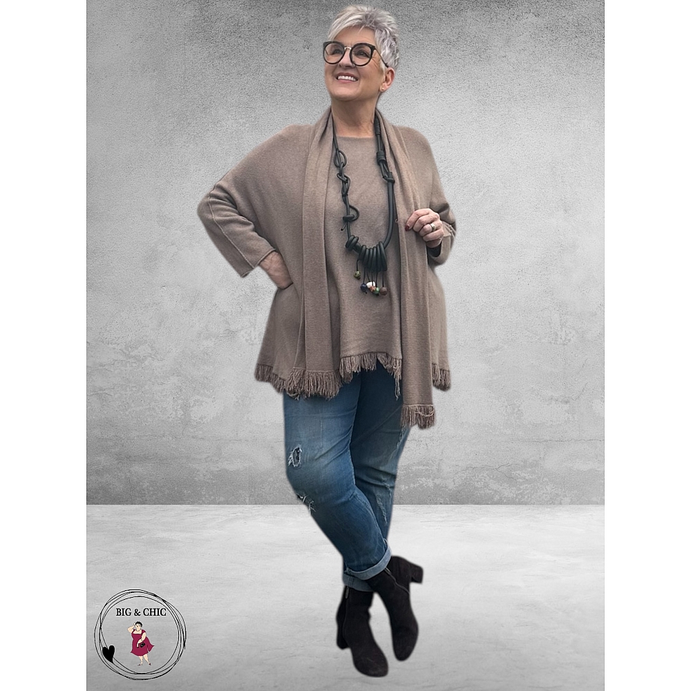 NOSTALGIA Gebreide Trui Taupe Met Sjaal