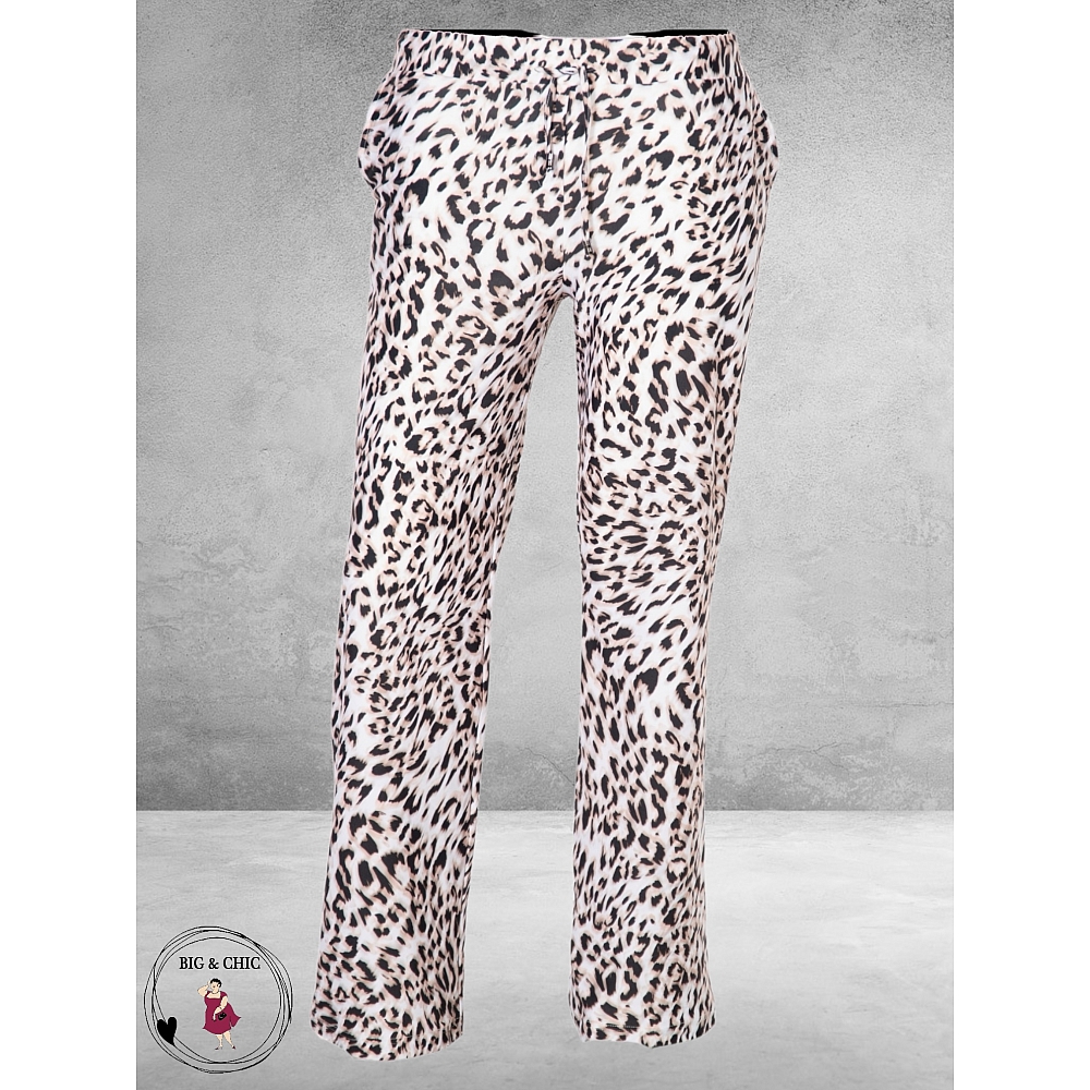 Trendy lange travel broek in Leopard print.