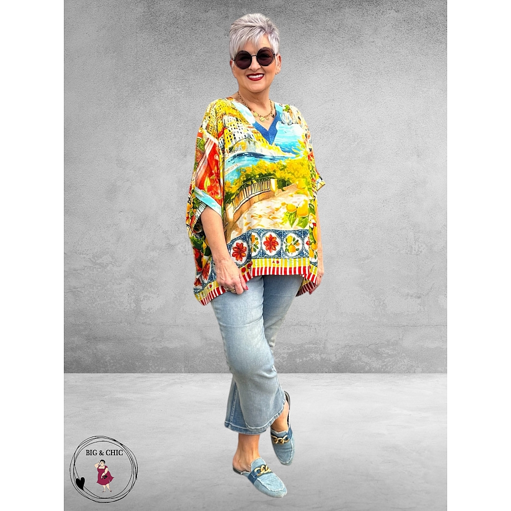 Deze prachtige blouse van Orientique – model Amalfi is een echte eyecatcher vol kleur en karakter.