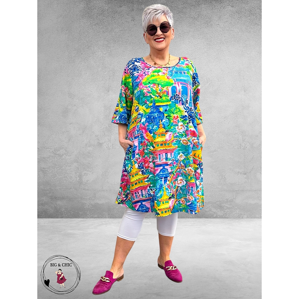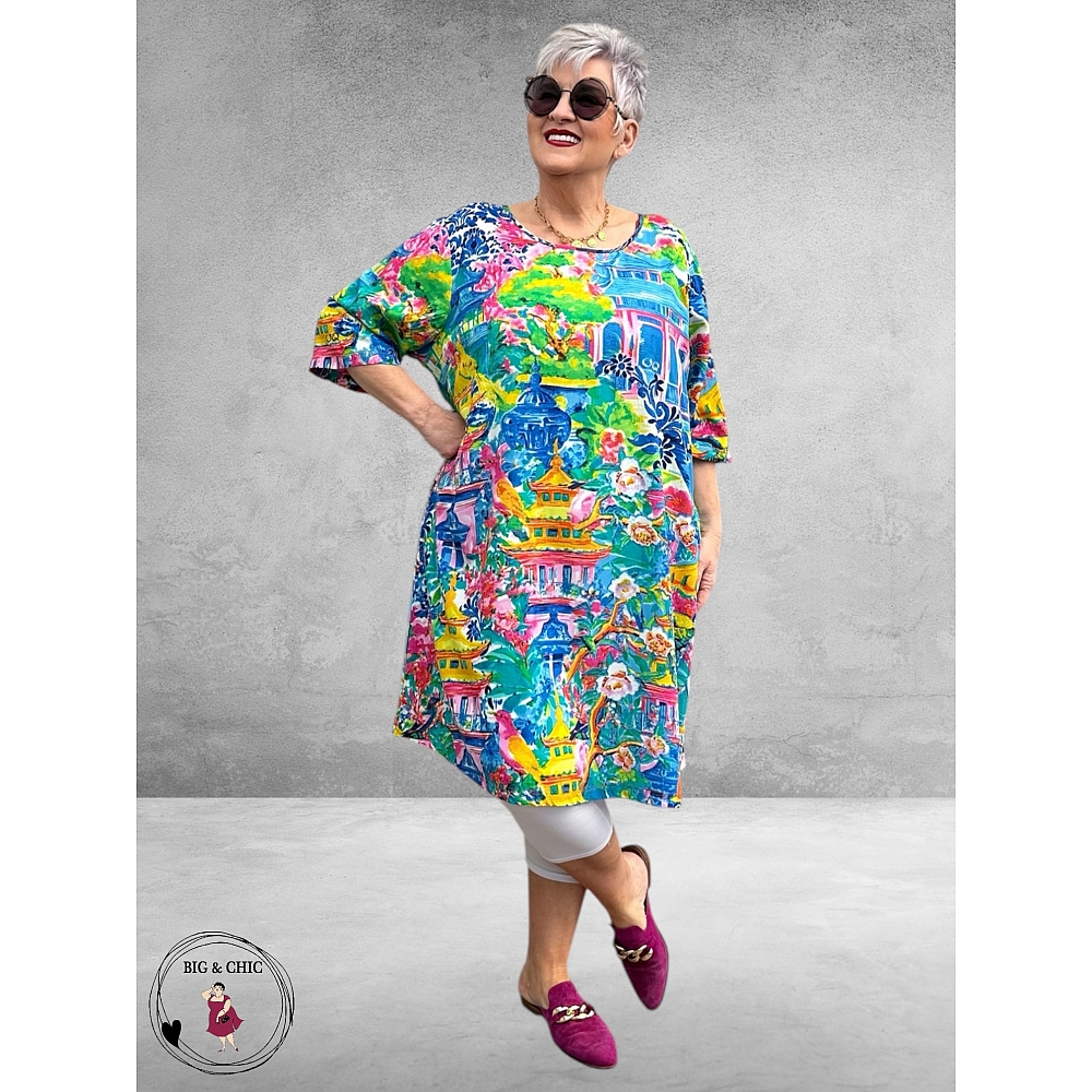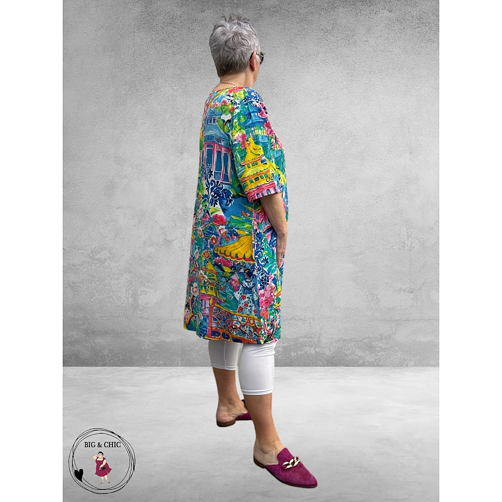 De jurk is gemaakt van 100% rayon, een heerlijk luchtige en ademende stof die perfect is voor warme dagen. Een ideale jurk om solo te dragen – stijlvol, comfortabel en opvallend door de bijzondere print.