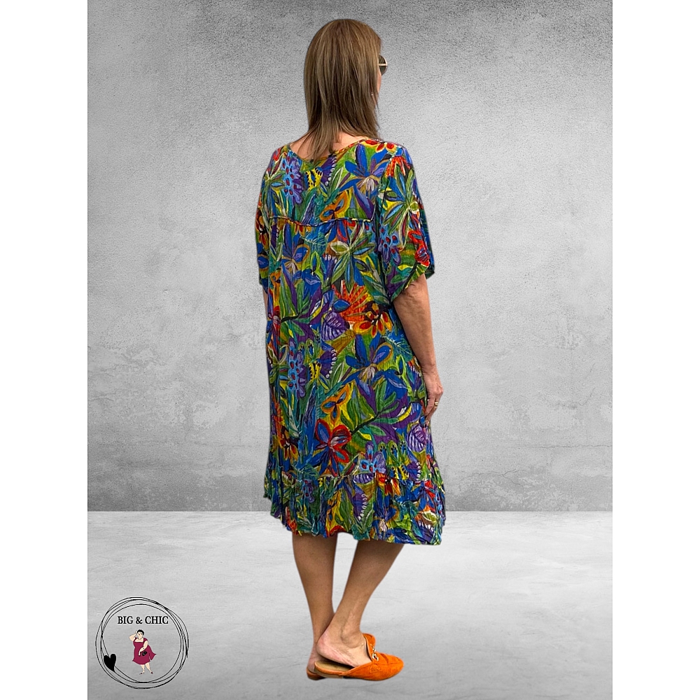 Een vrolijke en comfortabele jurk die perfect is voor zonnige dagen en vakanties.