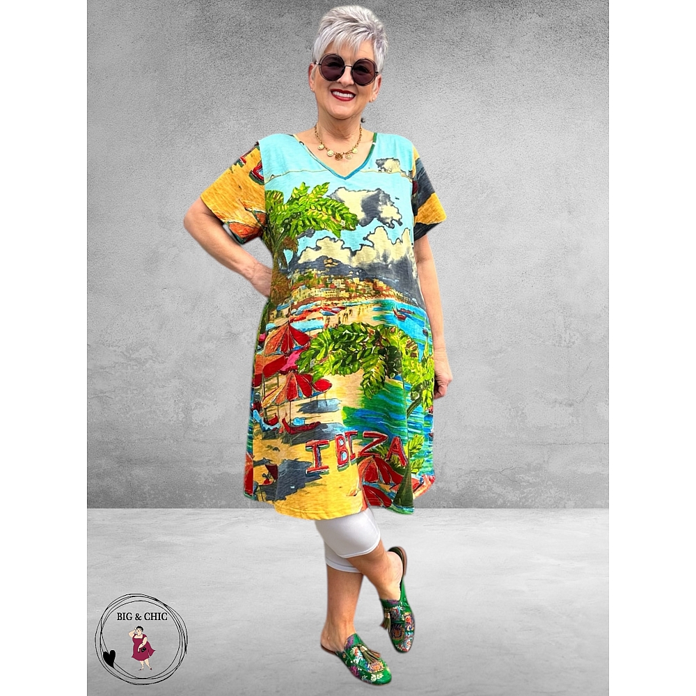 Breng direct het ultieme vakantiegevoel in je garderobe met deze prachtige jurk van Orientique – model Contemporary Ibiza.