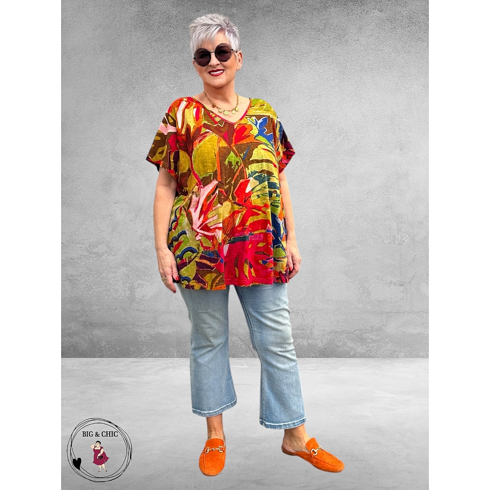Dit T-shirt van Orientique – model Red Leaves is een perfecte combinatie van comfort en een stijlvolle, moderne print.