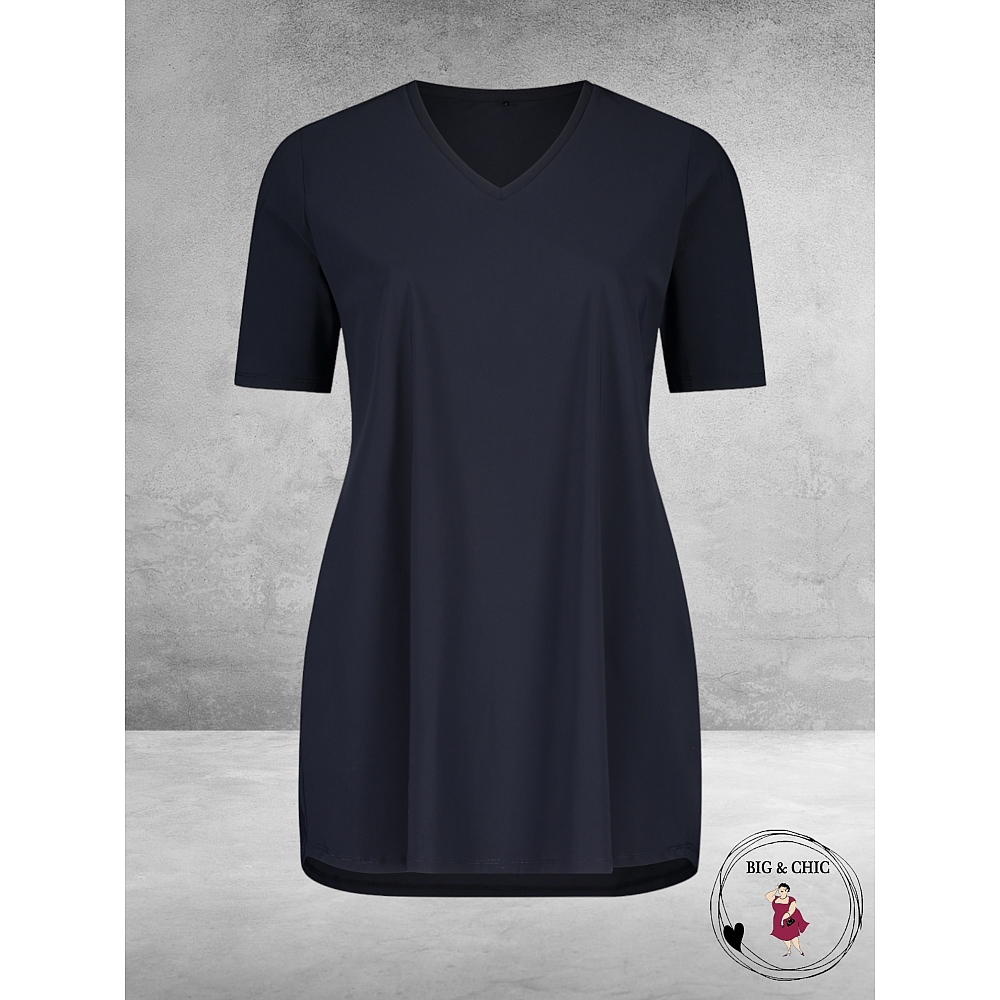 Plus Basics Shirt Tee V-Neck Navy