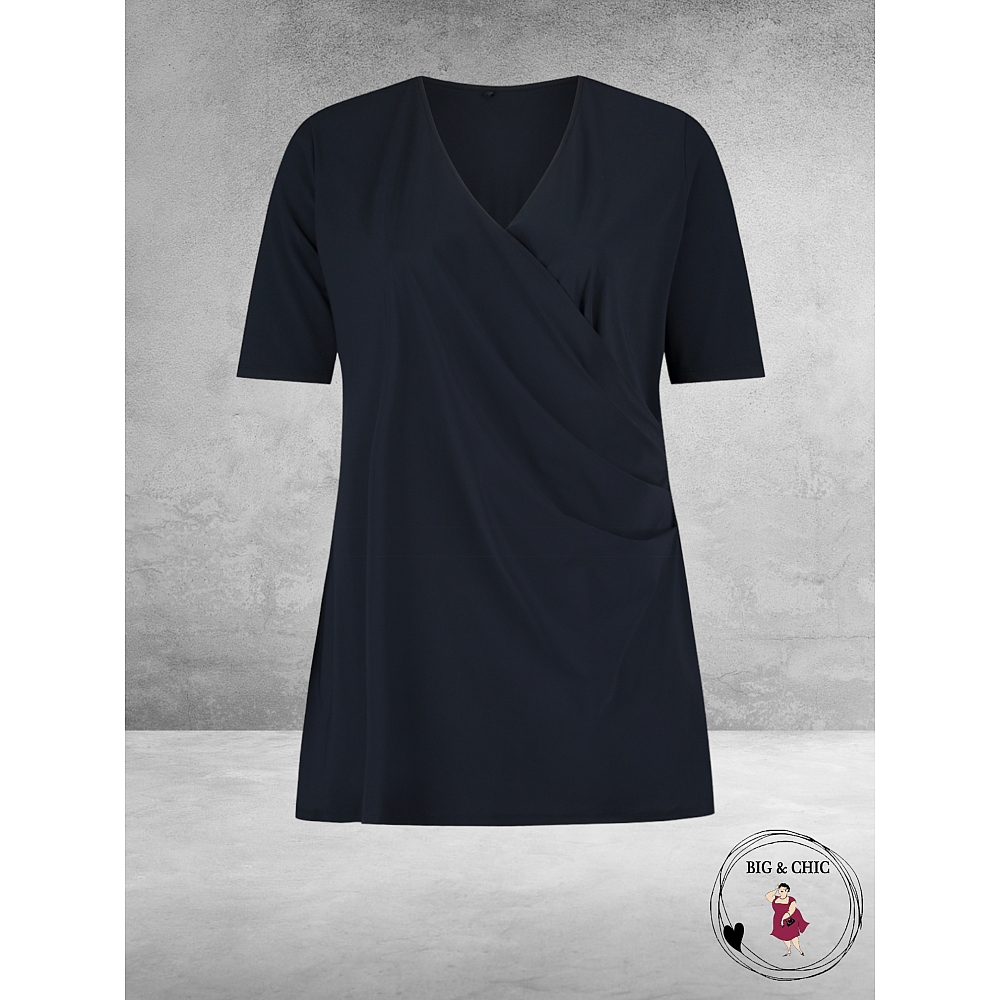 Prachtige travel top/shirt van Plus Basics met een geplooide overslag.