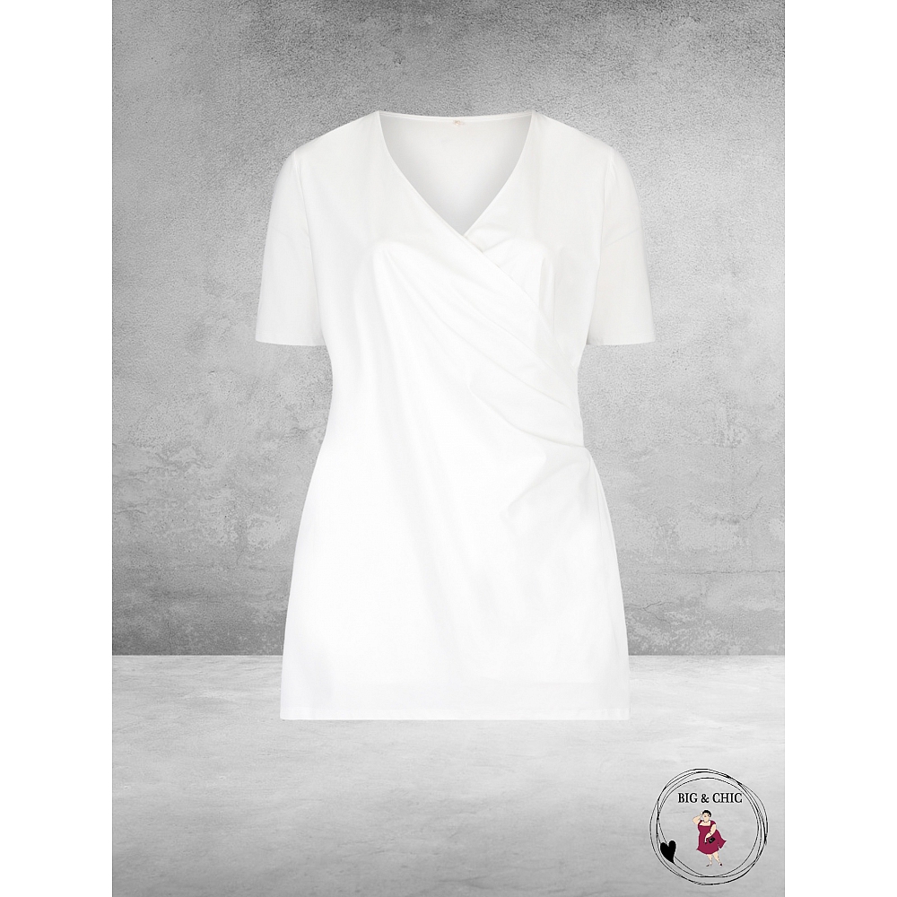 Prachtige travel top/shirt van Plus Basics met een geplooide overslag.
