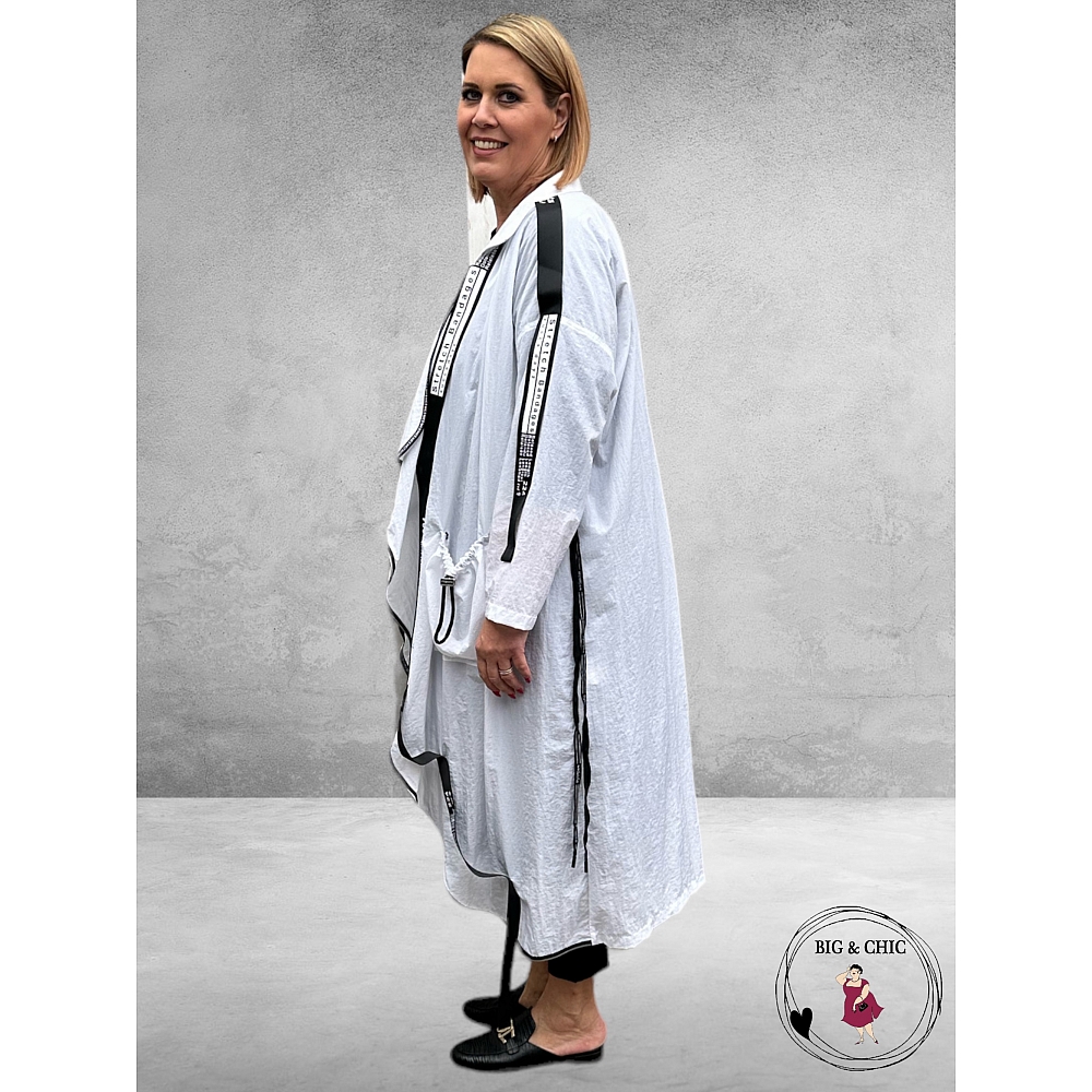 Wijd en los voor een nonchalante fit, met extravagante tekstbiesjes, opvallende banden en grote zakken.