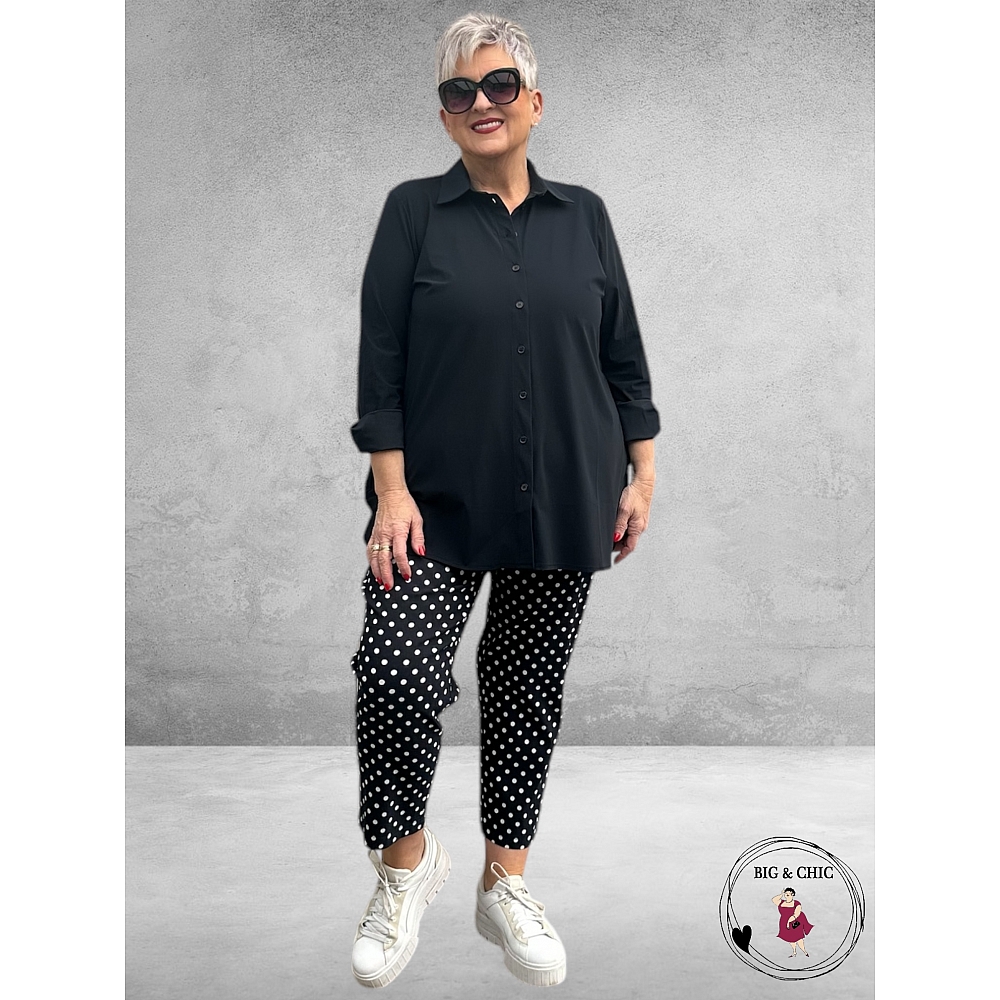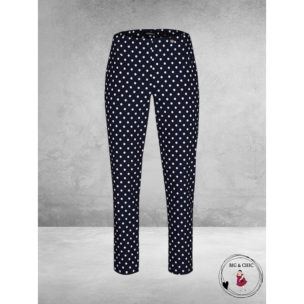 Prachtige stretch Bengaline broek in navy met witte dots.