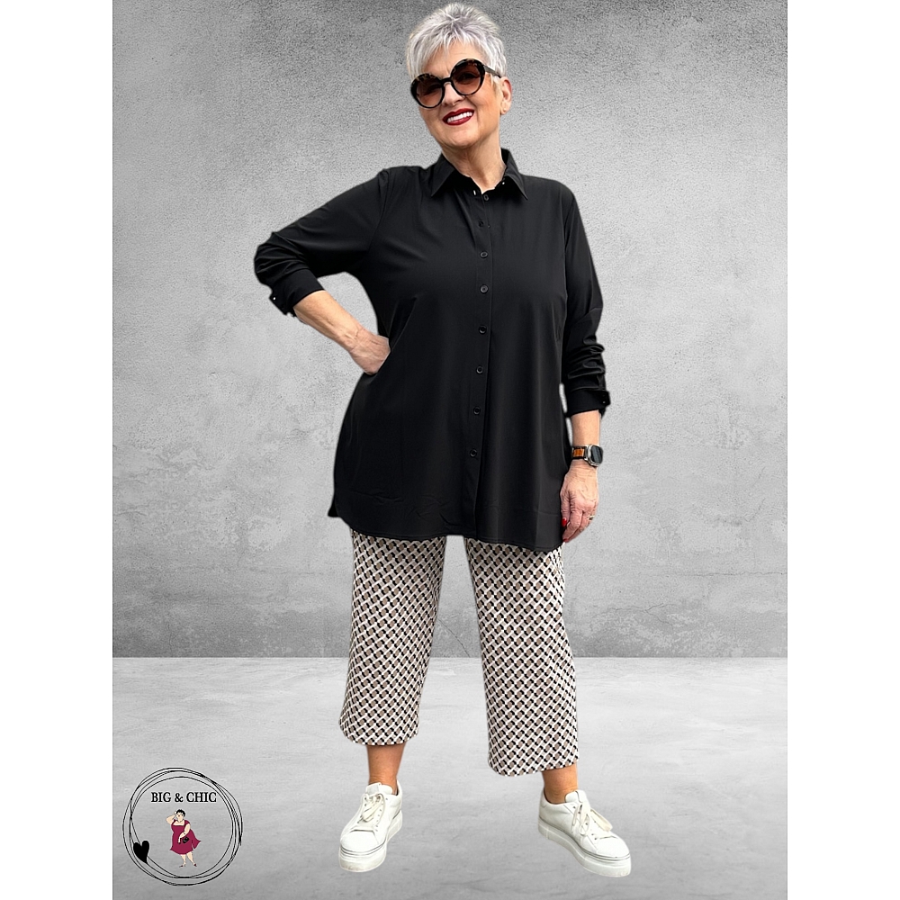 Bengaline Stretch Broek Efi – Zwart/Crème/Beige.