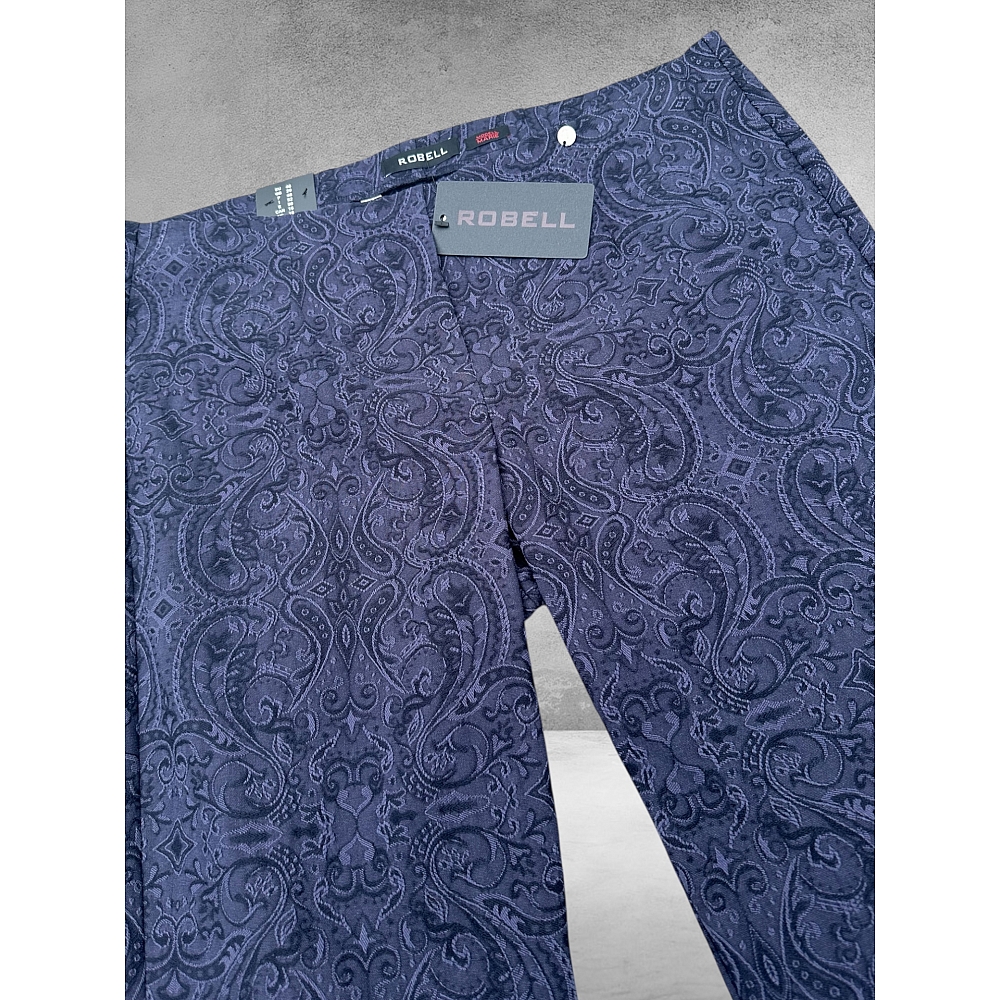 Robell Broek Marie Straight Fit met Paisley Print – Navy