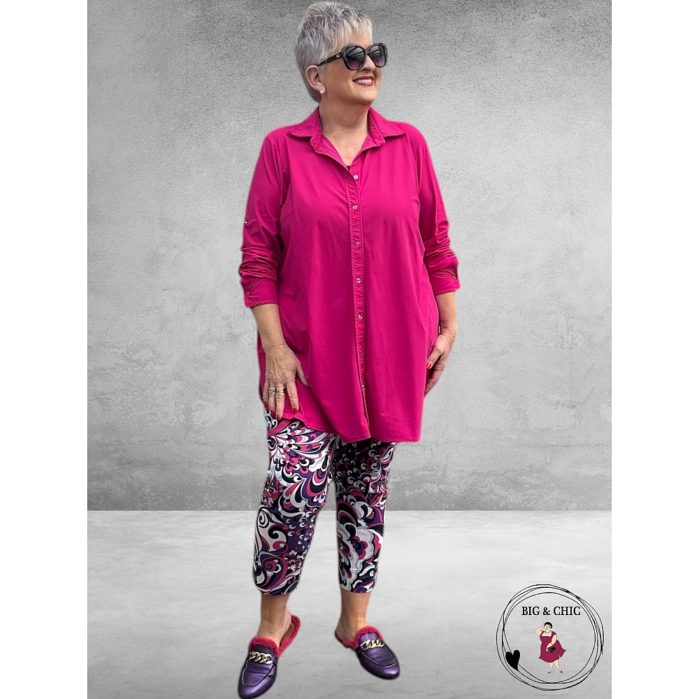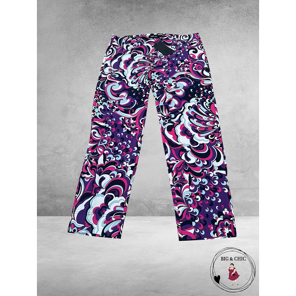 Prachtige stretch Bengaline broek in lila-pink-zwart en wit.