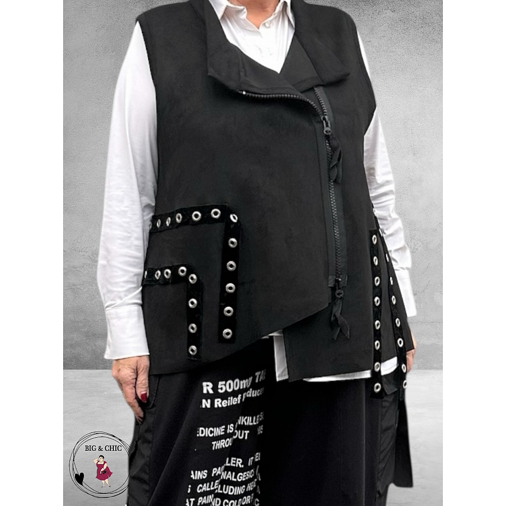 Geef je outfit een edgy touch met dit zwarte gilet van Sinne Design.