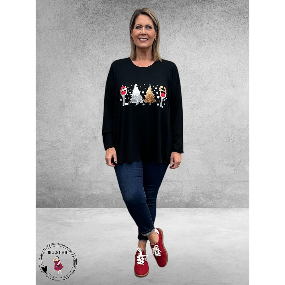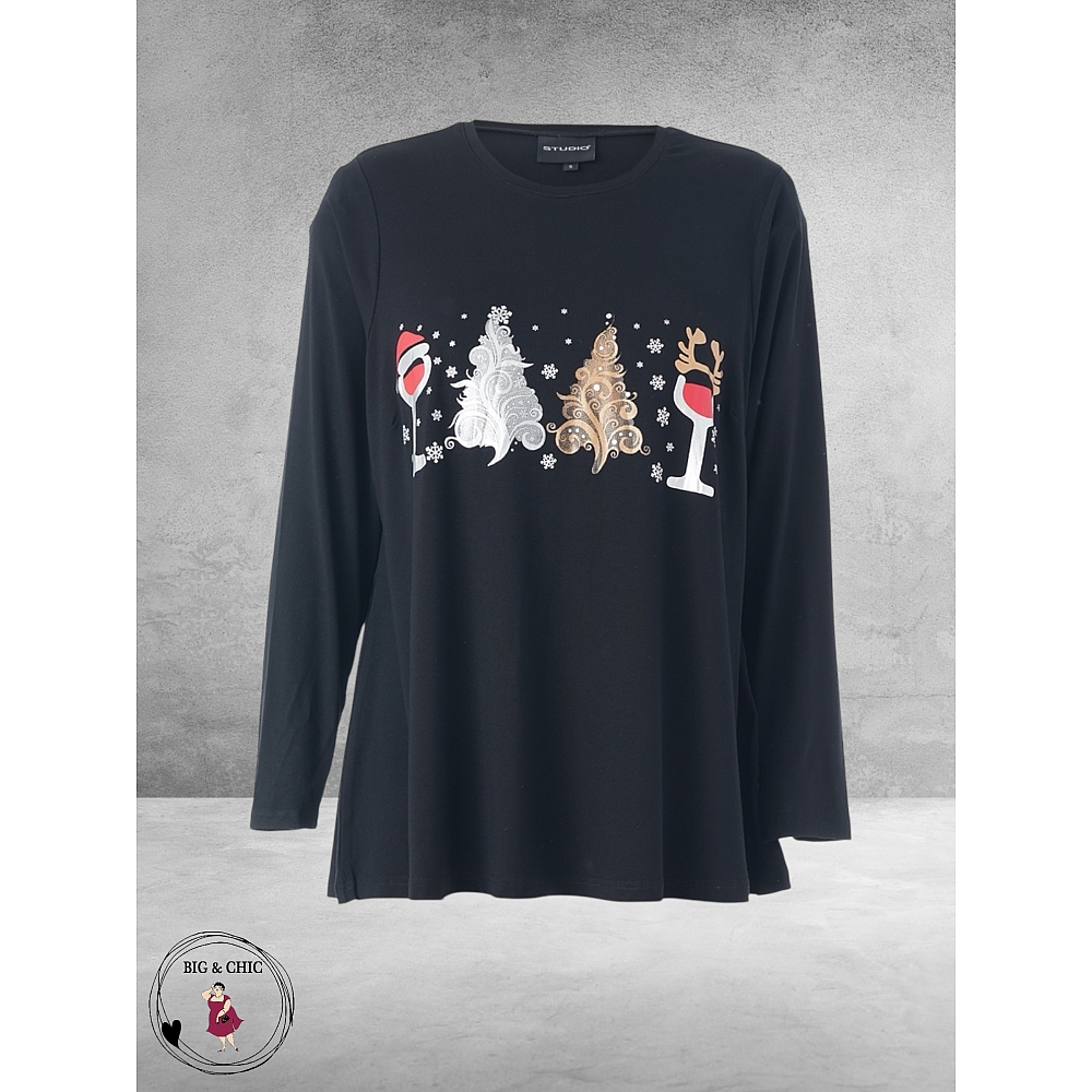 Studio Shirt Hakima – Feestelijk Shirt met Kerstprint, Lange Mouwen en Ronde Hals