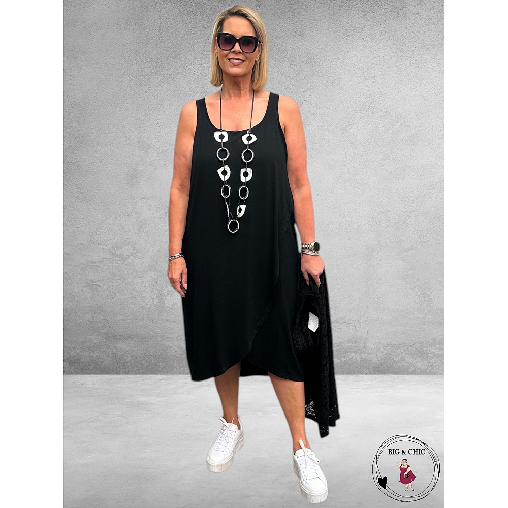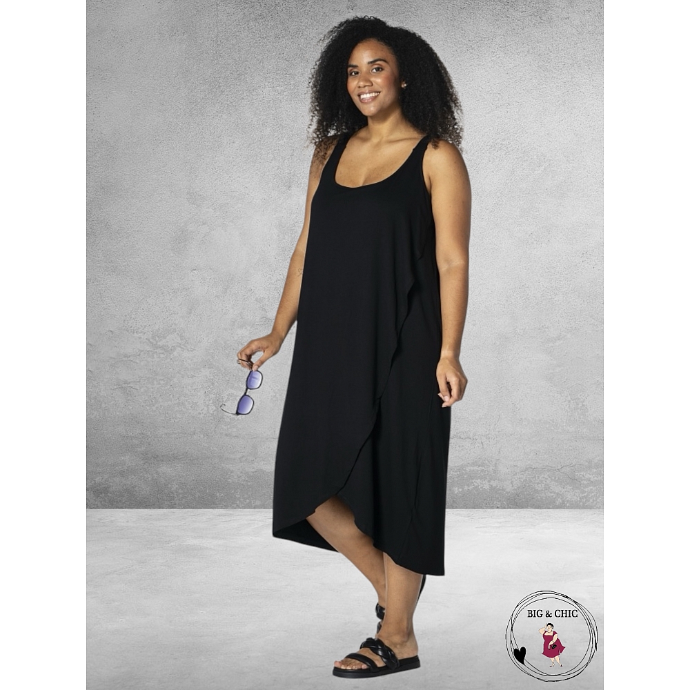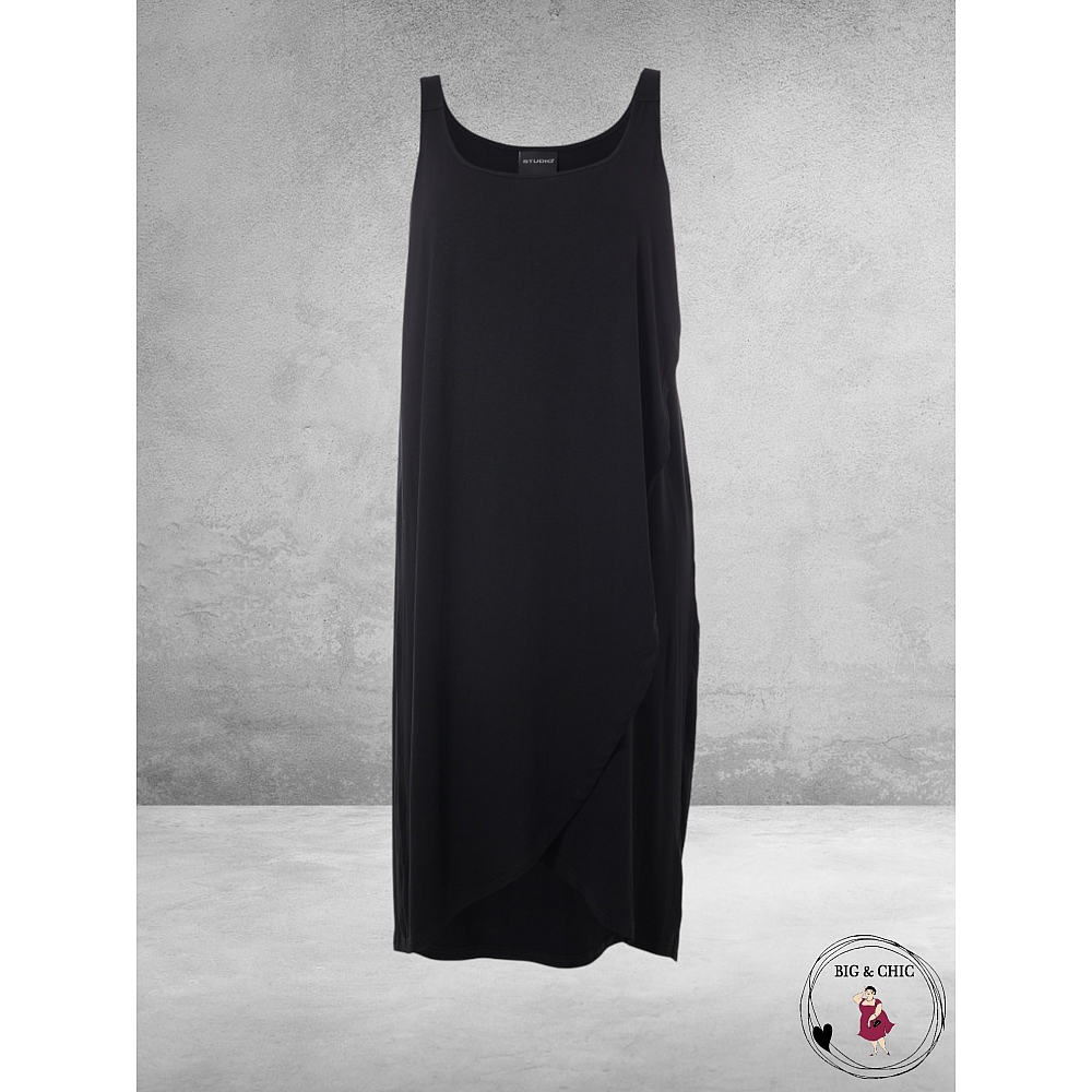 Eenvoudige maar zeer figuur vriendelijke zomerse mouwloze jurk van STUDIO in het zwart, gemaakt in een viscose elasthan en jersey kwaliteit.