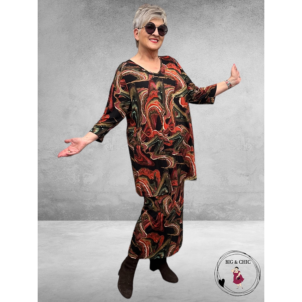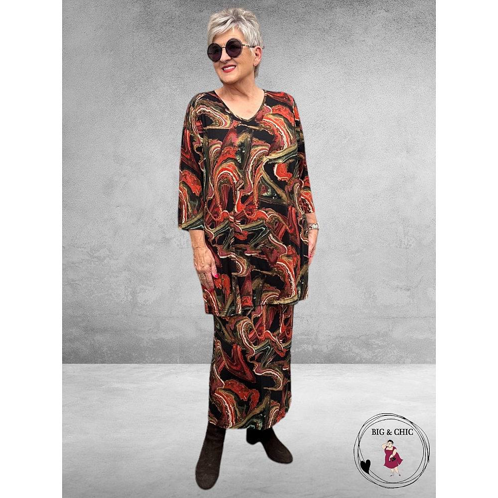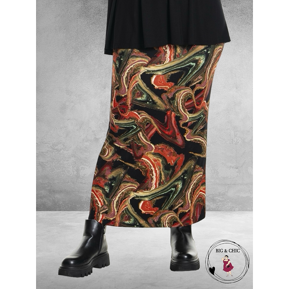 Deze elegante lange rok van het merk STUDIO heeft een recht model en een mooie herfst print.