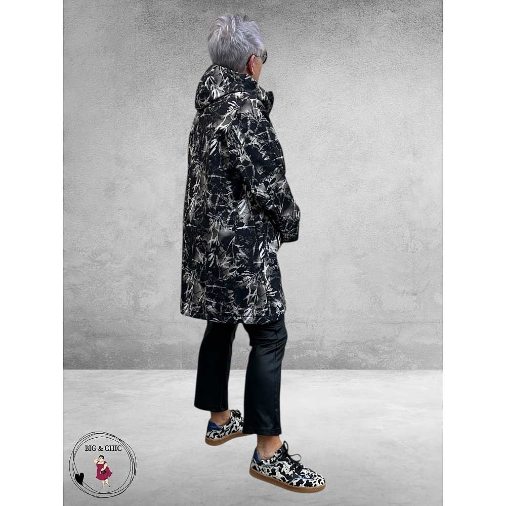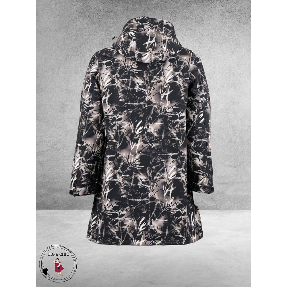 De jas is uitgevoerd in een stoere kleurencombinatie van zwart, kaki en cream, waardoor hij makkelijk te combineren is met elke outfit.