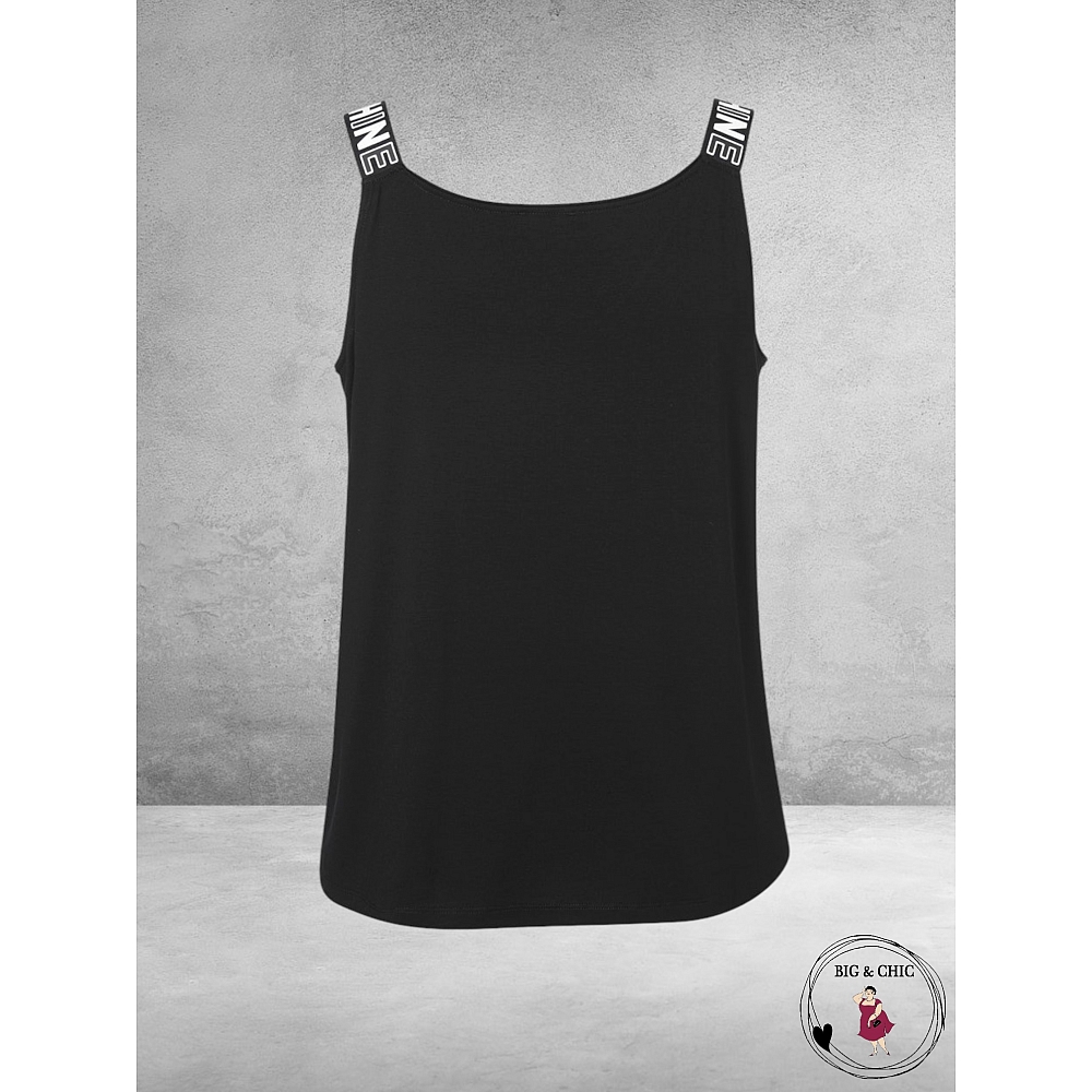 Mooie basic top van het merk VIA APPIA DUE in het zwart, de top heeft brede bandjes met een leuke tekst in het wit, ideaal om zo te dragen op mooie zomerse dagen of te combineren onder een jasje, vest of blazer.